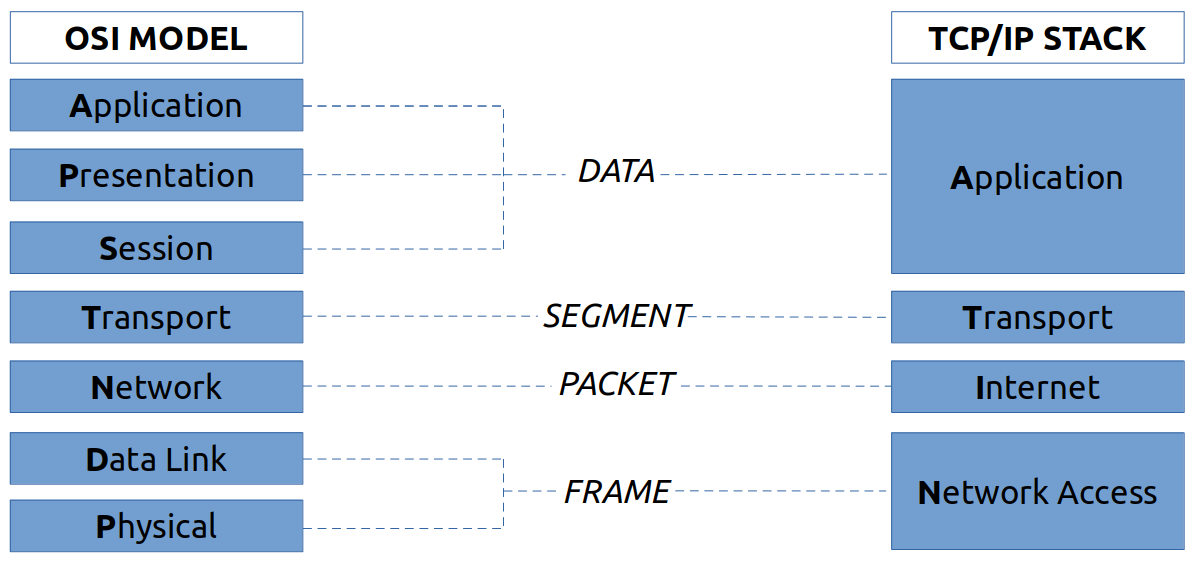 When two hosts talk to each other, they exchange PDUs (Protocol Data Unit). They can be divided into different terms based on which layer of the TCP/IP is considered (see picture 2.1).